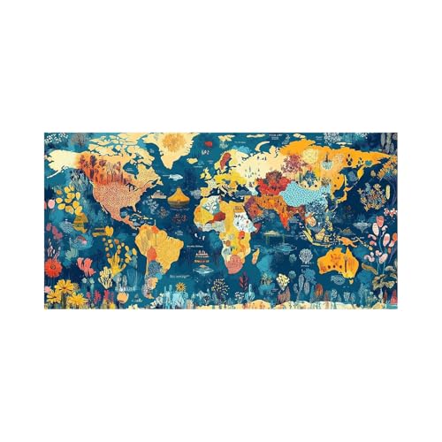 ダイヤモンドアート 世界地図キット (70 x 140 CM)。抽象的な絵画、5D DIY全面貼り付けタイプ。初心者向け、子供も楽しめるインテリアアート。ギフトにも最適。