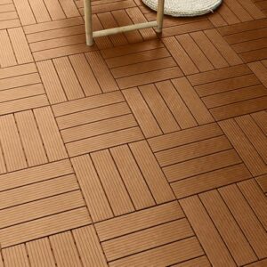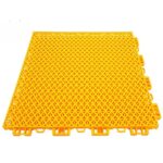 25/50枚入りのプラスチック製フローリング。水はけマットで、ガーデンやベランダ、駐車場用。滑り止め仕様で、組み立て簡単。業務用にも適し、幼稚園や学校の遊び場にも最適です。色はイエロー。