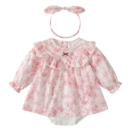 Baby nest ベビー服 女の子用の綿100%ロンパース。春秋のお出かけにぴったりで、新生児の誕生日や出産祝いに最適。ヘアバンド付きで、おしゃれなピンクデザイン。サイズは73、6-9ヶ月対応。