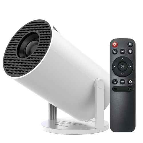 家庭用小型プロジェクター。Android TV搭載、270°回転、自動台形補正。27000LMで4K対応、1080P解像度。Bluetooth5.3、スピーカー内蔵、Wi-Fi6。大画面、50%ズーム、iOS/Android/PC/DVD/PS/Switch対応。