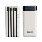 エイヴォルのモバイルバッテリーは20000mAhの大容量で、4本のケーブルを内蔵。5台同時充電可能、LCD残量表示付き、軽量でコンパクト。iOS/Android全機種対応で、防災や緊急時にも便利。PSE認証済み。