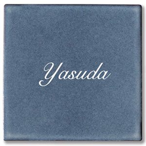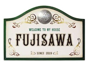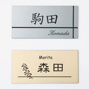 AnglersLifeのアクリル表札は、正方形デザインで金箔文字が特徴です。戸建てやマンション、アパートに最適。サイズは130×130mm、色はサファイヤブルー。美しい筆記体でネームプレートをカスタマイズできます。