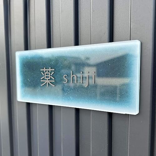 AnglersLifeのアクリル表札は、180×72mmの長方形デザインで戸建てやマンション、アパートに最適。マットシルバーの文字カラーとエメラルドグリーンの組み合わせが特徴的な、スタイリッシュなネームプレートです。