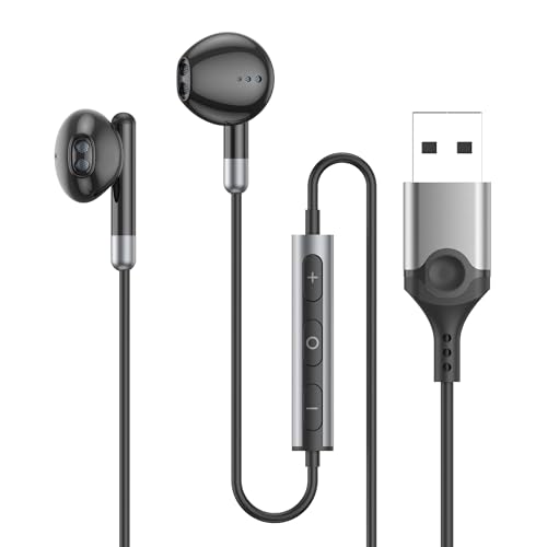 イヤホンマイク付きUSB有線ヘッドセット。2.3mケーブル、HIFI音質、音量調節機能あり。テレワークやWEB会議に最適で、PCやラップトップに対応。