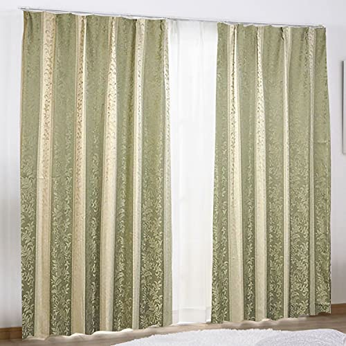 シーフィールド モーリス ジャガード 遮光カーテン2枚組 幅100×200cm丈 グリーン 3級遮光 裏地付 形状記憶 洗濯OK HZ-CU-1-N 高価買取中