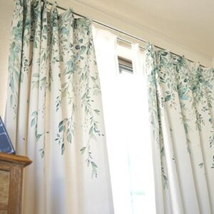 AooHomeのカフェカーテンは80cm丈で麻風の葉柄デザイン。外から見えづらく、半遮光・断熱・UVカット機能付き。洗えるため衛生的で、キッチンやリビング、トイレ、玄関に最適です。