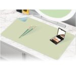 化粧台トッププロテクターは、両面防水&耐油設計で、お手入れ簡単。滑り止め機能付きで、美容やネイルアート、クラフトに最適。セージグリーン/ブルーのカラー展開。