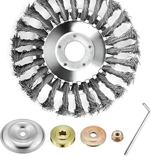 草刈り機替え刃(2025新型・JIS認証)。6インチ/8インチ対応のブラシヘッドワイヤーカッター。炭素鋼製で高耐久。簡単取り付けで、庭園・ガーデニングに最適。プロ仕様の草刈り、苔取りツール。