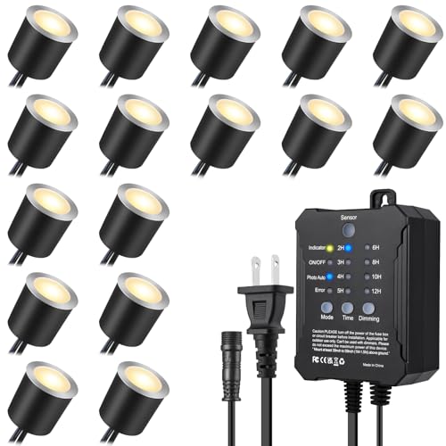 SMY Lightingのガーデンライトは、LED電球色で調光可能な16個セット。自動点灯、タイマー機能もあり、IP67防水、埋込みタイプで家庭用にも適しています。