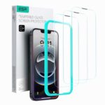 ESR iPhone 16e用ガラスフィルム、14/13/13 Pro対応。3枚入り、気泡なし、耐衝撃、高透過率、傷防止。自動吸着で簡単取り付け、ガイド枠付き。