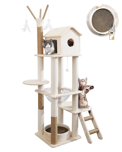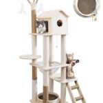 YUCHONG キャットタワーは、高さ145cmで大型猫や多頭飼い向け。透明ボウルや爪とぎポール付きで、運動不足解消にも最適です。省スペースでおしゃれ、掃除も簡単。
