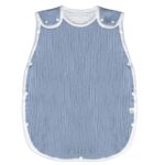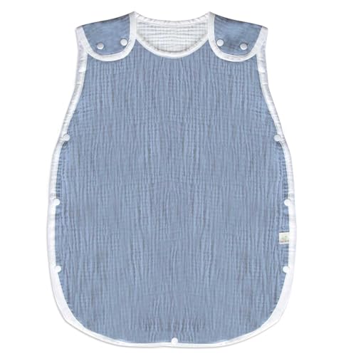 ケラッタのイブルスリーパーは赤ちゃん用のガーゼ素材で、綿100%。新生児から4歳まで使用でき、春夏通年で快適。寝たまま着せられる便利なデザイン。カラーはブルー。