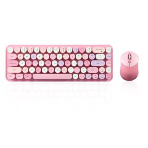 Perixx PERIDUO-802PK Bluetooth ワイヤレスミニキーボードマウスセットレトロラウンドキーピンク英語配列