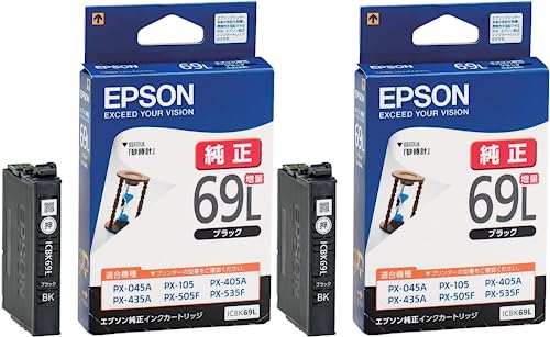 エプソン EPSON 純正 砂時計 ICBK69L インクカートリッジ ブラックの2個セットです。大容量で増量タイプ、印刷品質が高く、コストパフォーマンスに優れています。鮮明な黒色の印刷が可能。