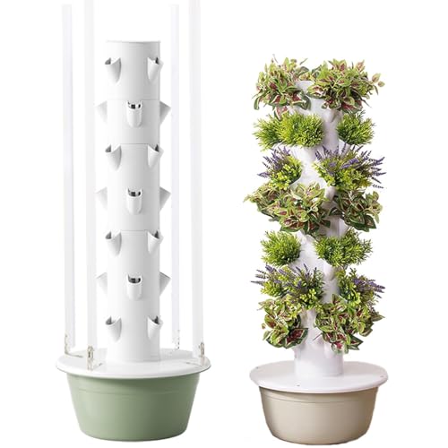 LED成長ライト付き水耕栽培タワーは、36株の野菜が育てられ、DIYで設置可能です。屋内で無土壌栽培ができ、水和ポンプとアダプターが付属しています。