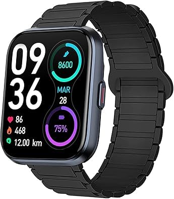 Lamshaw Quican ID208 Plus用の1.8インチマグネットバンド。シリコン製で軽量、22mmの交換バンドは調整が簡単。おしゃれなブラックストラップ。対応モデル: IDW13, IDW16, IDW17, IDW19, IDW20, IDW21, IDW23, IDW25, IDW26。