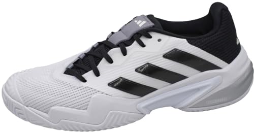 アディダスのテニスシューズ、バリケード 13 テニス LZR24。カラーはフットウェアホワイト/コアブラック/グレースリー。サイズは27.0 cmで、快適な履き心地と優れたサポートを提供します。