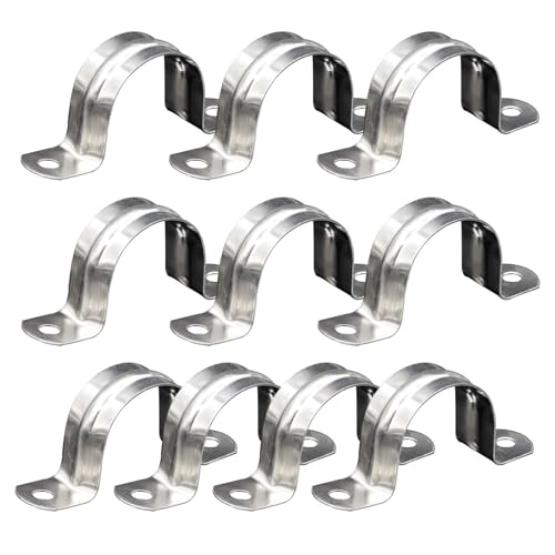 ステンレス製サドルバンド10個セット。高耐久で錆に強く、屋外使用にも最適。サイズ調整が簡単で、配管やケーブルの固定に便利です。DIYや工事現場で活躍します。