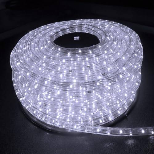 QUALISS LEDイルミネーション3芯角型ロープライト50m、2500球、ホワイト。28種類の点滅パターン、常時点灯、コントローラー付。屋外使用可、防雨・防滴、電飾・メモリー機能付き。PSE取得品。