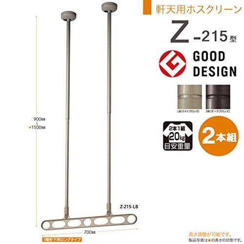 川口技研の軒天用ホスクリーンZ-215型は、屋外軒下天井に取り付ける物干し金物です。2本の超ロングシャフトタイプがセットになり、ダークブロンズ色でスタイリッシュなデザインです。耐久性も高く、効率的に洗濯物を干せます。