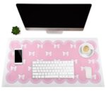 INCREWAYのダイニングテーブルマットは40×60cmのレザー製で、防水・滑り止め機能があり、デスクトップを保護します。ネイルやメイクの際にも便利で、オフィスやレストランでも使用できます。ピンクのリボンデザインが魅力的です。