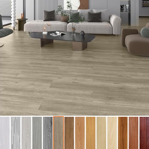 フロアタイル木目調クッションフロア144枚(約12畳、厚み1.8mm)。防水・防汚で土足OK。接着剤不要、貼るだけの簡単作業。リフォームや模様替えに最適。サイズは91.44*15.24*0.18cm。初心者にもおすすめ。