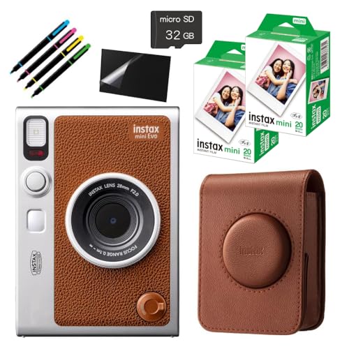 チェキ instax mini Evo&ケース&チェキフィルム40枚&microSD32GB&液晶保護フィルム&デコペン (ブラウン, 7点セット)の製品情報