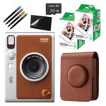 チェキ instax mini Evoは、クラシックなデザインと最新技術を融合。持ち運びに便利なケース、フィルム40枚、32GBのmicroSD、液晶保護フィルム、デコペンがセットになったブラウンの7点セットです。