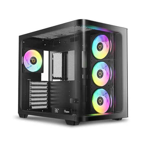 Iota C70 BK Curve ARGBミッドタワーPCケースは、270°曲面パノラマビュー、リアルタイム温度表示、4基のPWMファン、豊富なエアフローを提供。ATX/MATX/ITX対応で、デュアルチャンバー設計です。