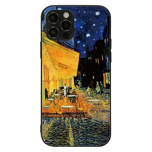 iPhone13Pro用9Hガラス背面ケース。薄型デザインで、名画・ゴッホの『夜のカフェテラス』を美しく再現。TPU素材で耐衝撃性もあり、スマートフォンをしっかり保護します。