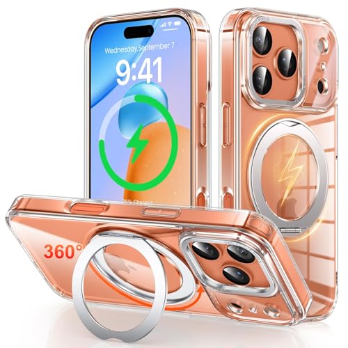 Gunwon iPhone 17 Pro 用ケースは、Magsafe対応でワイヤレス充電が可能。360°回転スタンドで縦横両対応。米軍規格の耐衝撃設計、防指紋、リングマグネット搭載のクリアカバーです。
