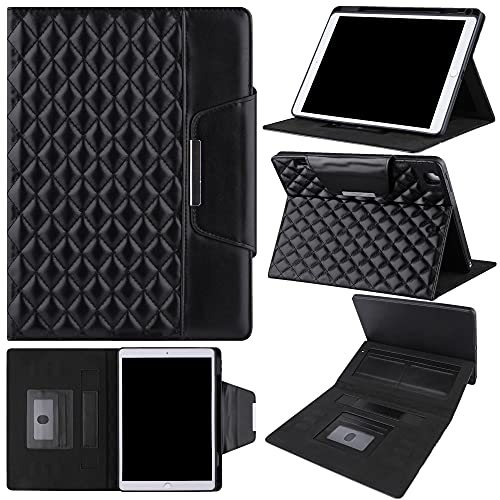 iPad 10.2(第7世代~第9世代)/10.5(Air3/Pro)対応ケース。PUレザー製、傷・衝撃防止、全方位保護。自動スリープ機能、持ち運び便利な手持ちバンド、カード・紙幣収納、角度調整可能。