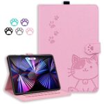 YIMASE iPad 10世代/11世代ケース、かわいい猫のプリント、防塵・傷つきにくい、スタンド機能付き。着脱簡単、ピンク色。