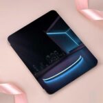 iPad Air 11インチ M2 (2024、第6世代)対応ケース。未来的なショールームで展示。耐衝撃・全面保護・キズ防止。角度調整可能な三つ折りスタンド付き。
