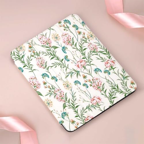 iPad Air 11インチケース (M2, 2024年 第6世代)。手描き野生の花のデザイン、磁気吸着、自動ウェイク/スリープ、PU合成レザー製で耐久性あり。