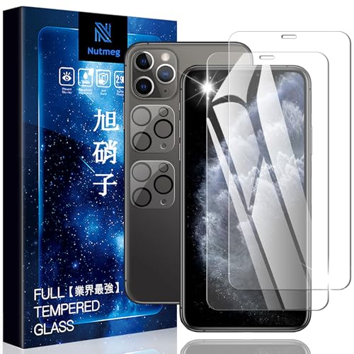 iPhone 11 Pro Max用ガラスフィルム2枚セット。強化ガラス素材で耐衝撃性に優れ、HDクリアな視認性を確保。指紋防止コーティング付きで、簡単に貼ることができるのが特長。