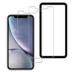 ガイド枠付きの日本旭硝子製強化ガラスフィルム。iPhone 11/XR対応で9H硬度を誇り、液晶をしっかり保護。2枚入りでコストパフォーマンスも高い。