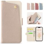 CASSYOOKのiPhone12 miniケースは手帳型でカードポケット付き。横置きスタンド機能あり。高級PUレザー製、全体保護、上質な手触りで擦り傷防止。カラーはアプリコット。