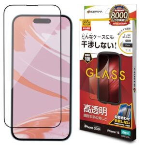 MAGIC JOHN対応のiPhone 15用ガラスフィルム2枚セット。ガイド枠付きで自動吸着、指紋防止・飛散防止機能あり。黒縁付きでスクラッチ防止効果も。貼りやすい設計で、スマートフォンをしっかり保護します。