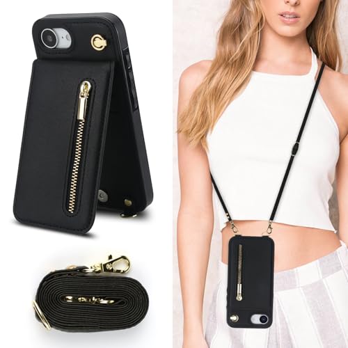 CavorのiPhone 16e対応手帳型スマホケースは、肩掛けや斜めがけとして使用可能。ストラップ付きで、カード収納も完備。PUレザー製、上下開き、6.1インチ対応のクロスボディデザイン。カラーはブラック。