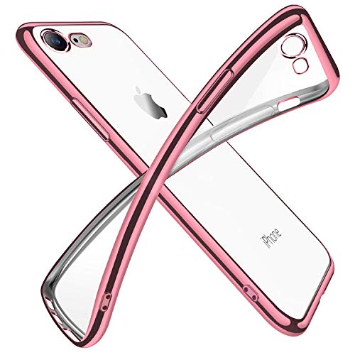対応 iPhone SE3/SE/8/7 用ケース クリア 透明 tpu シリコン メッキ加工 スリム 薄型 4.7インチ スマホケース 耐衝撃 黄変防止 一体型 人気 携帯カバー ピンク 高価買取中