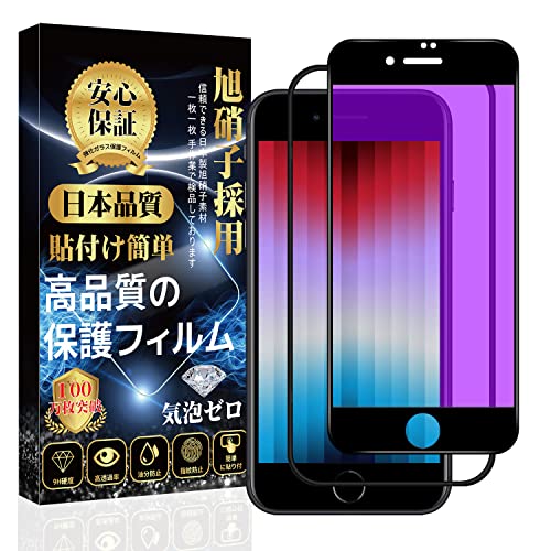 iPhone SE(第3世代 / 第2世代)用のブルーライトカット強化ガラスフィルム。指紋防止、気泡防止、飛散防止、キズ防止機能付き。簡単貼り付けで、iPhone 8/7にも対応。