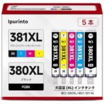 Ipurinto BCI-381XL 380XL インクは、Canon用の大容量5色パックです。対応機種はTS6330、TS6130、TS6230など、互換性があります。