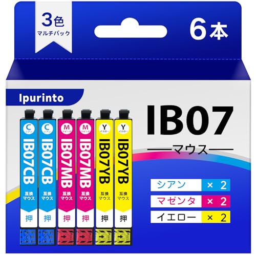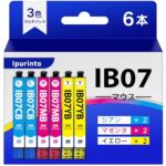 「Ipurinto」IB07は、エプソン用大容量インクカートリッジです。対応機種はPX-M6010F、M6011F、S6010で、IB07CL4Bと併用可能。3色6本パック(IB07CB、IB07MB、IB07YB)を提供します。