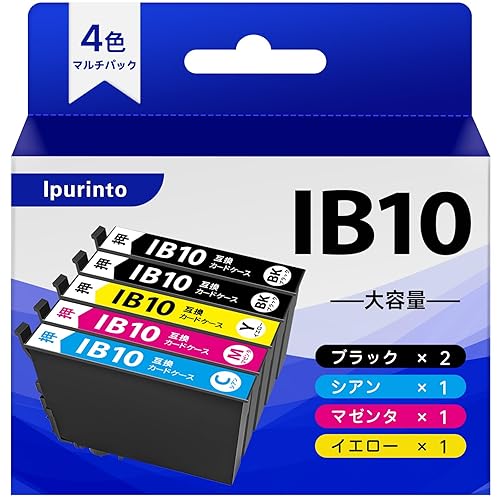 Ipurinto IB10CL4Aは、EPSON EW-M530F用の互換インクです。ブラック2本のIB10KAとカラー5本(IB10CA、IB10MA、IB10YA)が含まれています。高品質でコストパフォーマンスに優れています。