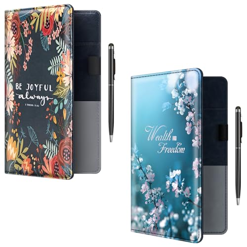 BVYA ウェイトレス用サーバーブック2冊セット。サイズ5×9インチ、PUレザー製で耐久性あり。ジッパーポケット付き、各ペンも含むユニークなプリントデザイン。