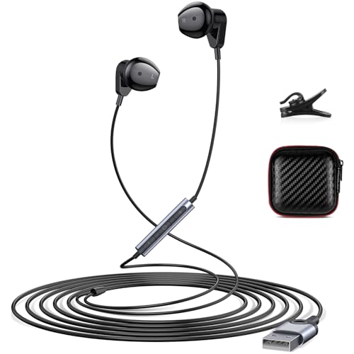 PCノートパソコン用のマイク付きUSBヘッドフォン。高音質な有線ステレオで、セミインイヤーデザイン。ボリュームコントローラー付きで、ノートパソコン、Mac、Chrome、PS5、Skype、Zoomに対応。