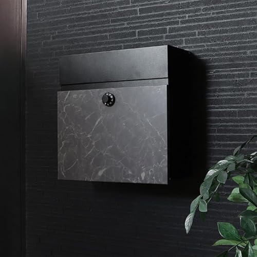 壁掛けスタンドの大理石製郵便ポスト。おしゃれな北欧デザインで、鍵付きダイヤル錠付き。玄関にぴったりの防犯機能を備え、大容量で新聞も収容可能。ブラックカラーで上品な印象。