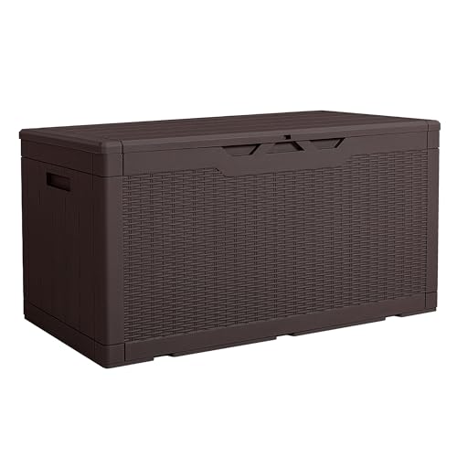 Alebert物置は、屋外用の防水・耐候性収納庫。大容量380Lで、幅123cm、奥行57cm、高さ62cm。ガーデンやベランダに最適なおしゃれなデザイン。