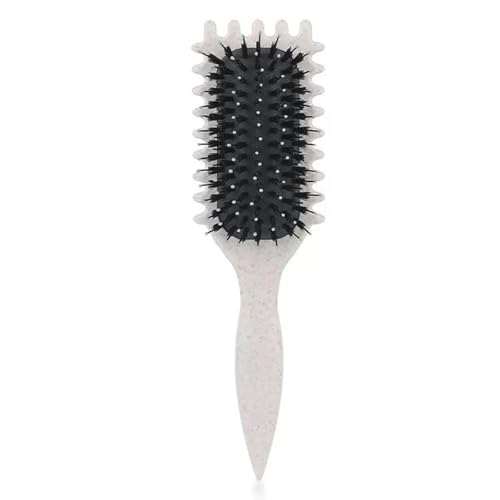 髪の毛に優しい麦わら素材のヘアブラシ。サラサラに仕上げ、頭皮ケアやヘアスタイリングに最適。携帯便利で男女兼用、弾力カール櫛機能付き。